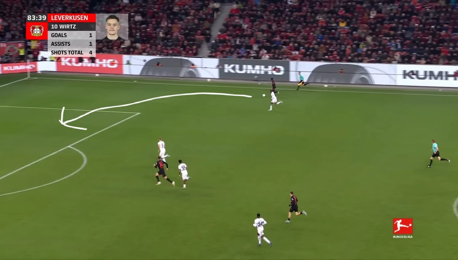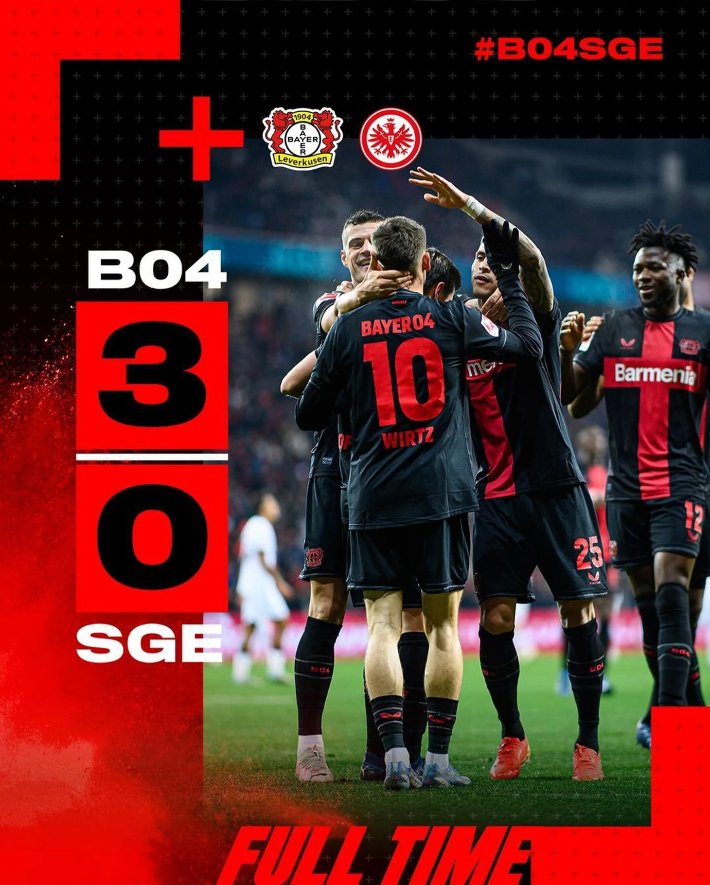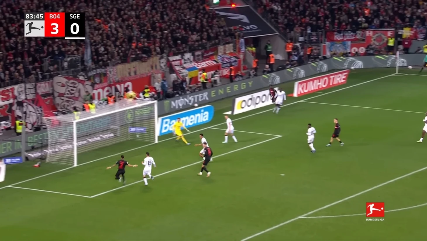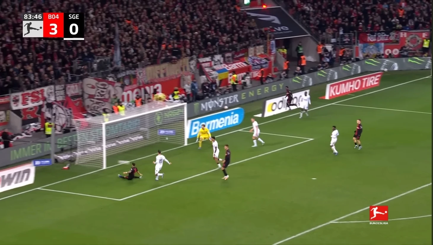 Всего через пять минут Виртц увеличил счет до 3:0 благодаря замечательному удару над Траппом после хорошей передачи от Бонифаса.