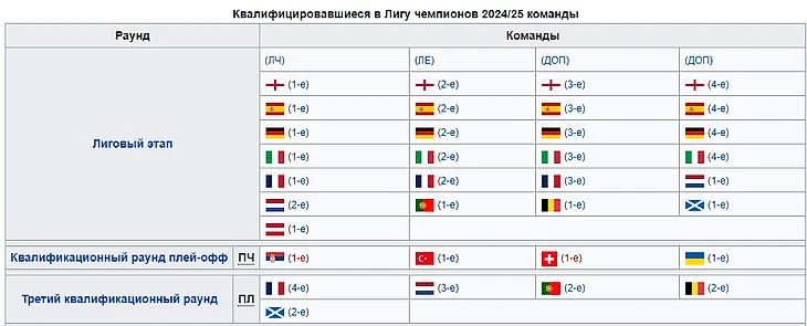 Как известно, с сезона 2024-2025 года Лига чемпионов УЕФА прощается с групповым раундом как с классом. Вместо нее приходит лиговый этап и швейцарская система. Теперь распределение команд будет выглядеть следующим образом:
