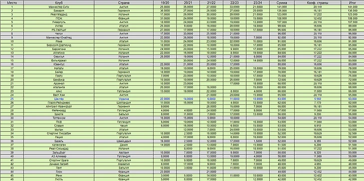 2. Суммарный клубный рейтинг доступен по ссылке https://www.eurocups.ru/seas/mode/7/