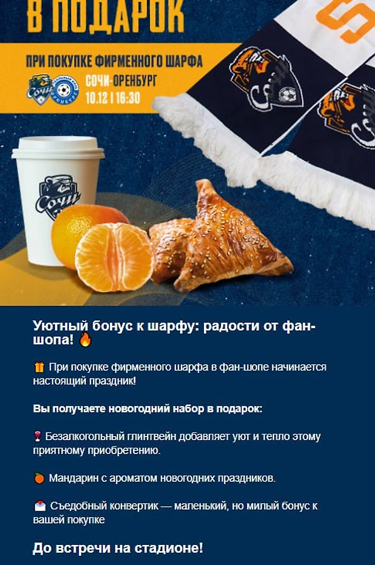 На матч с «Оренбургом» совместно со всей командой разработали квиз с новогодней тематикой для болельщиков. Также сделал викторину, которая входила в этот квиз. Организовал акцию с фан-шопом и кейтерингом, и наконец сняли с другими стажерами новогодний промо-ролик к матчу.