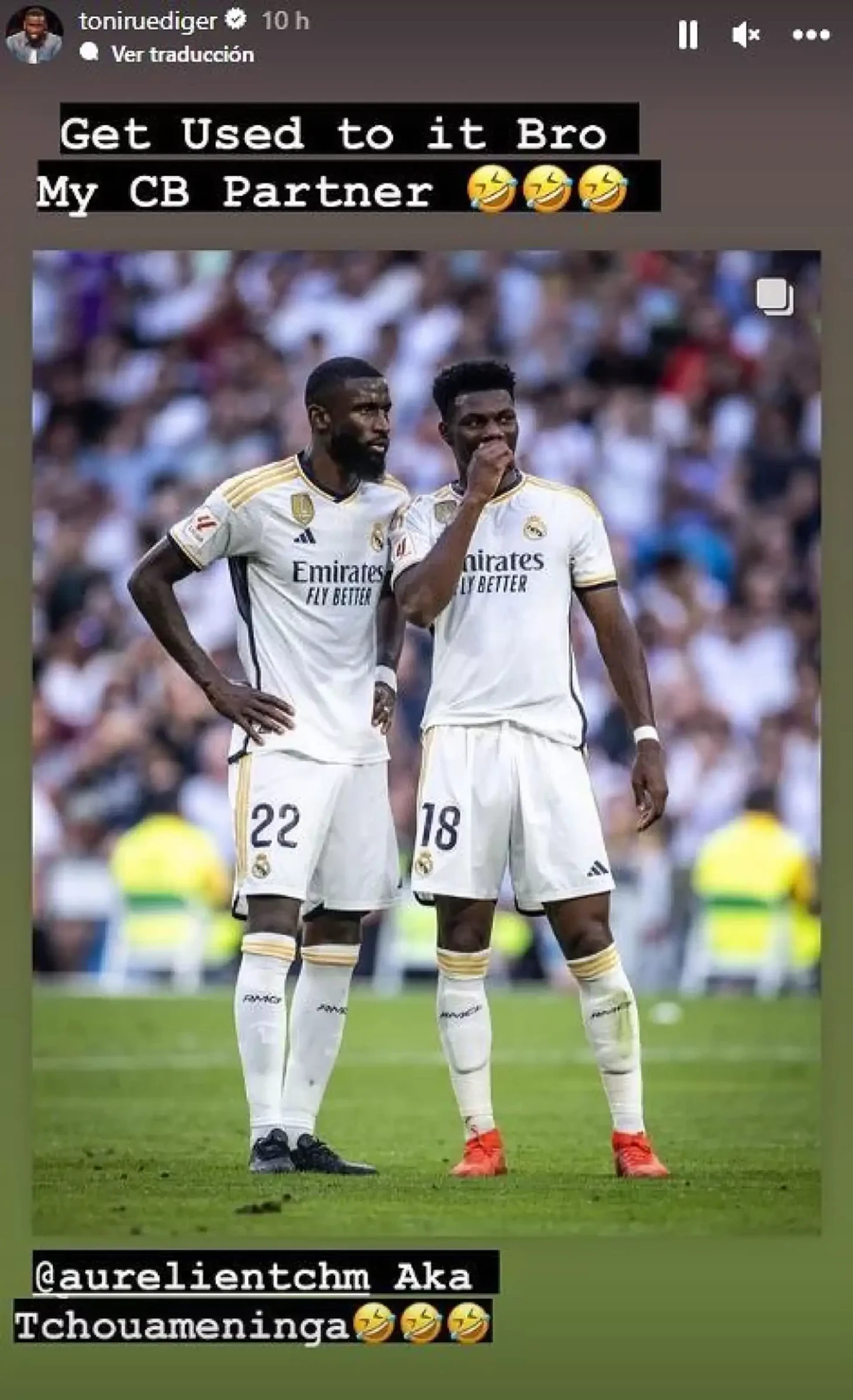 «Привыкай к этому, братан. Мой новый партнер по центру обороны. Тчуаменинга 🤣🤣🤣», - написал в соцсетях защитник мадридского «Реала».