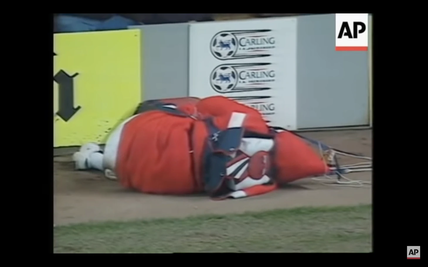 Найджела обступили сотрудники стадиона, погрузили на носилки, надели кислородную маску и под аплодисменты увезли под трибуны. Пока он лежал в сознании, дергаясь от боли, на газон приземлялись остальные парашютисты.