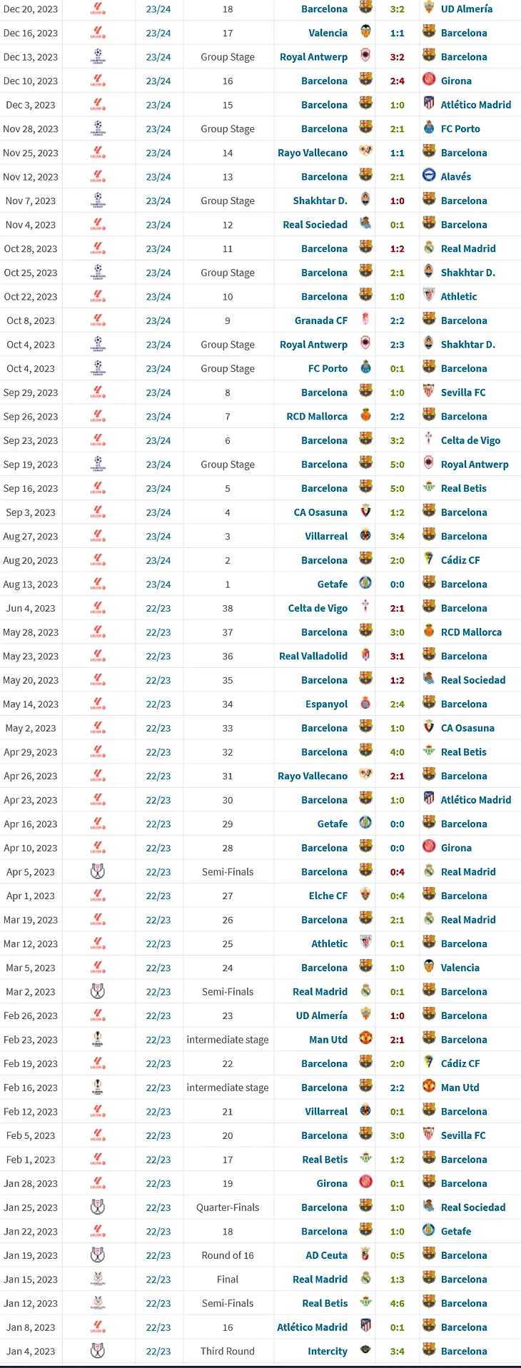 «Барселона» выиграла 37, проиграла 11 и сыграла вничью 9 из 57 матчей в 2023 году (товарищеские не считаем).