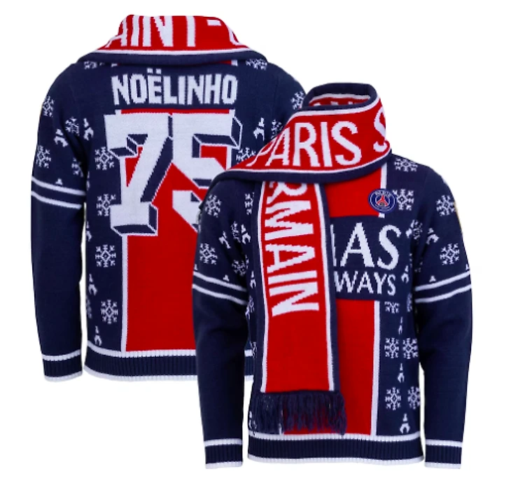 У «ПСЖ» интересный свитер сразу с шарфом и детская толстовка.