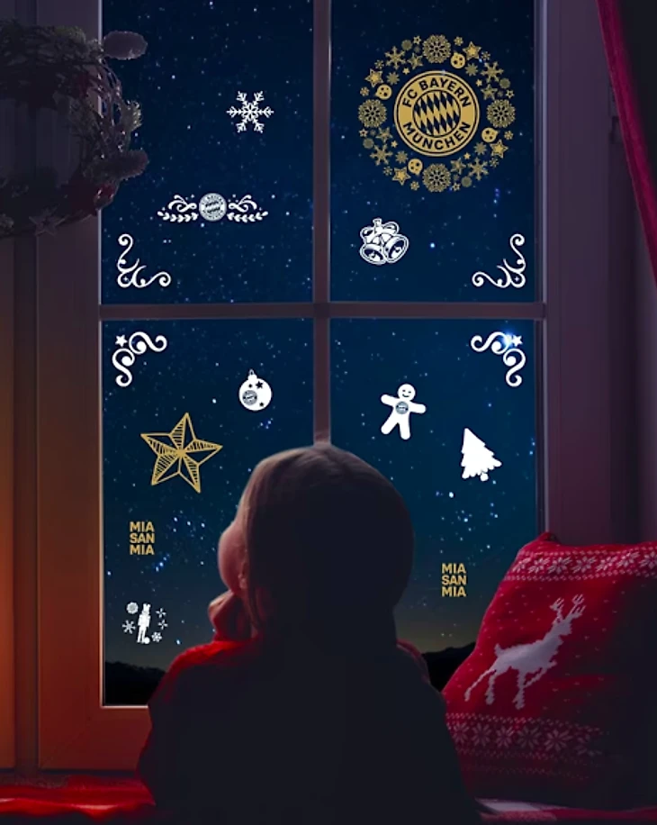 «Бавария» как всегда с креативом подходит к украшению дома: наклейки на окна, елочные игрушки.