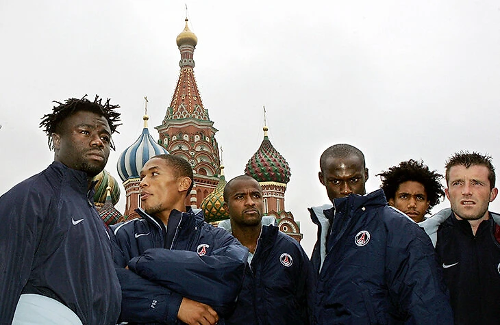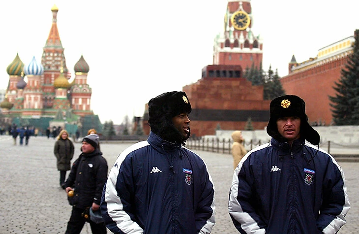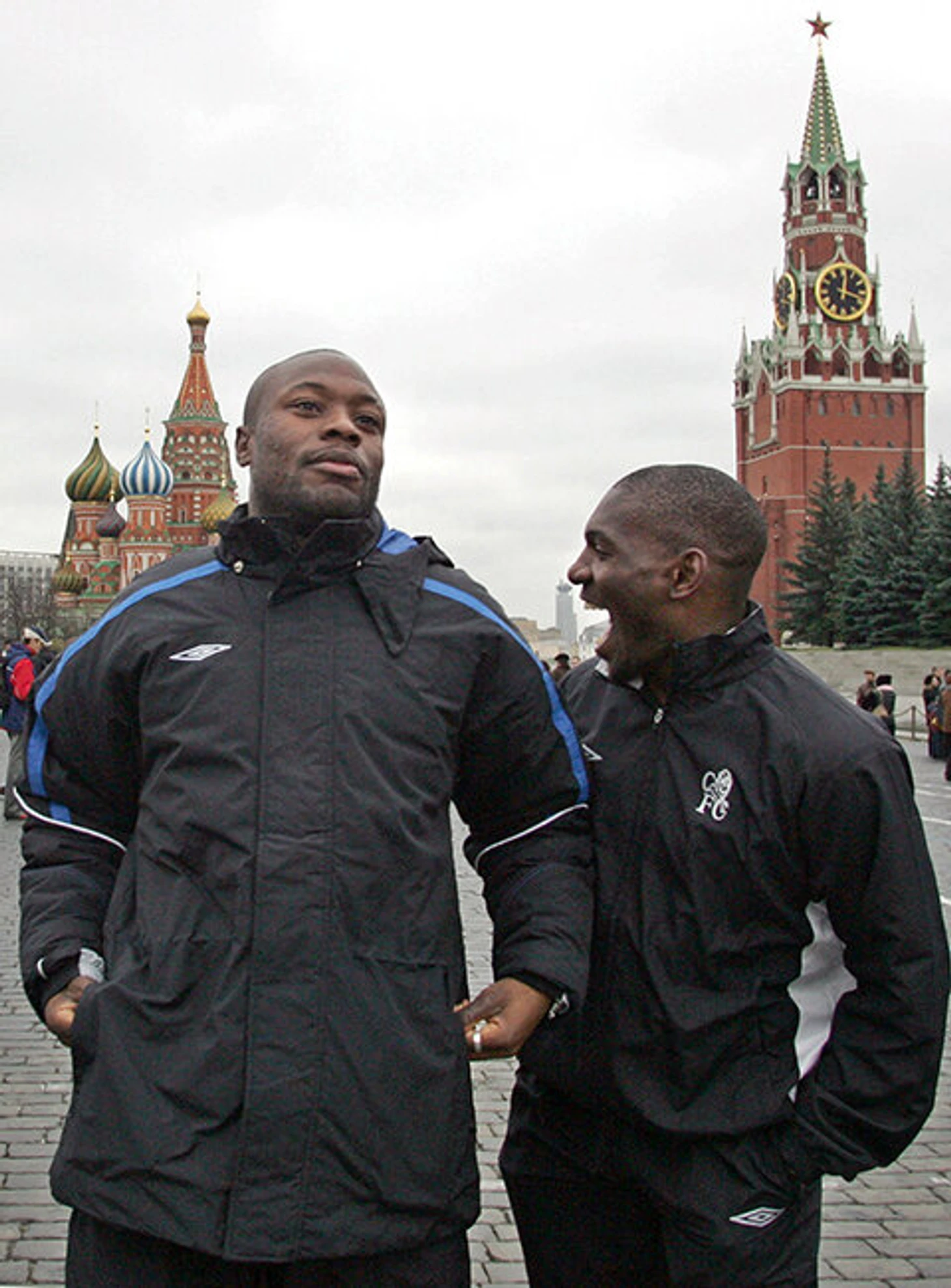 Уже звездный «Челси» на родине своего владельца: Вильям Галлас и Клод Макелеле познают Москву перед игрой ЛЧ с ЦСКА в том же 2004-м.