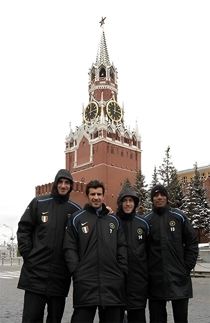 Звезды у стен Кремля: Роналдо в ушанке, сэр Алекс – с фуражкой, Златан и Фигу – у курантов