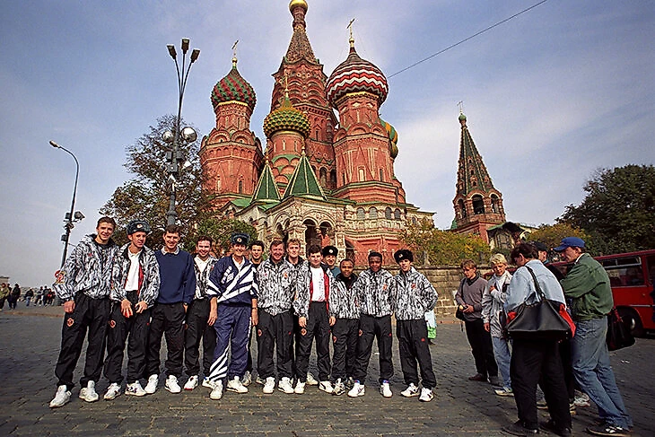 Какие спортивные костюмы «Манчестер Юнайтед» носил в 1992-м! Фотографировались так, когда приезжали играть с «Торпедо» в Кубке УЕФА.