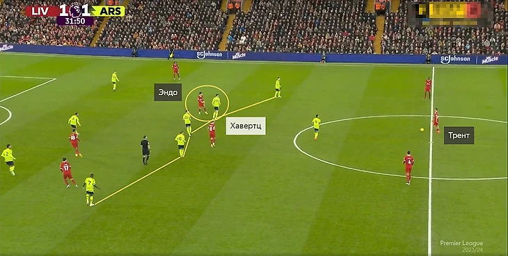 В начале матча Ватару опускался в тройку защитников в начальной фазе атаки, но «Ливерпуль» быстро это поменял. На позицию между Ван Дейком и Конате стал приходить Трент, который намного лучше японца продвигает мяч.