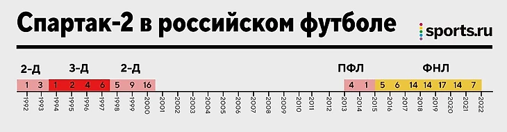 «Спартак-2» выступал в 90-е, а современная история началась в 2013-м. Тренером взяли уже упомянутого выше Бушманова: в 2015-м он вывел команду в ФНЛ, сразу занял там пятое место – самое высокое за семь лет. Бушманов на время уходил из команды, но в марте 2021-го вернулся: с ним «Спартак-2» сначала финишировал 14-м, а в сезоне-2021/22 – седьмым.