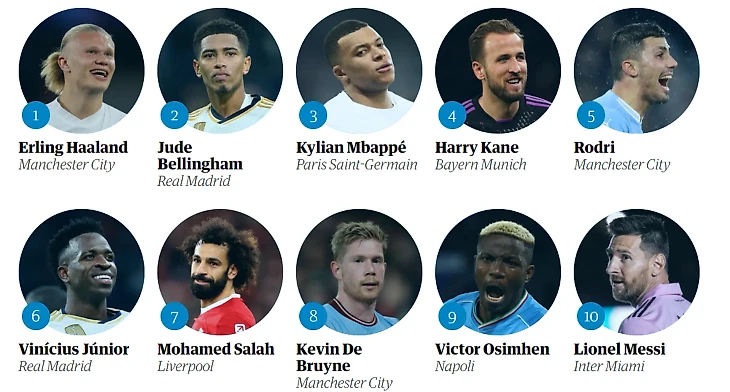 The Guardian опубликовал ежегодный список 100 лучших футболистов мира, основанный на выступлениях игроков в 2023 году.