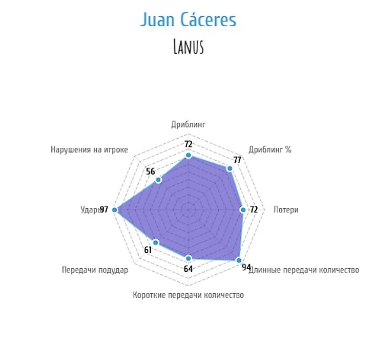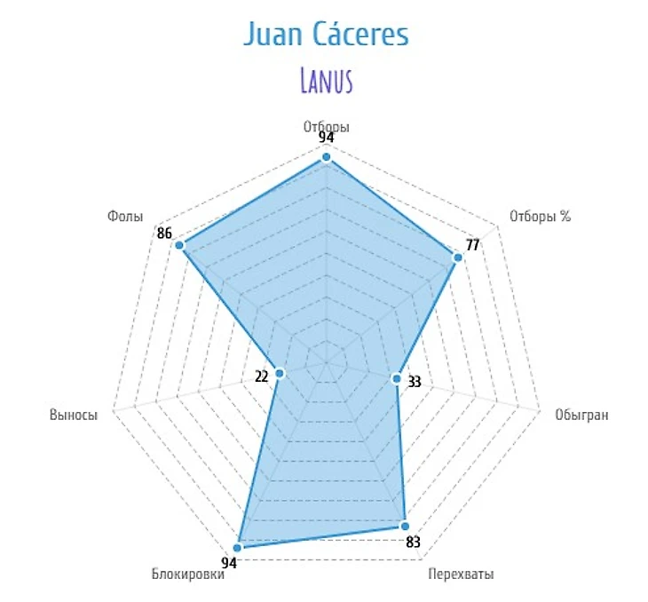 Сегодня хочу рассказать об игроке Высшей Лиги Аргентины Хуан Касересе. Так как на мой взгляд он является топ игроком на своей позиции, предоставить статистику, что бы Наглядно показать в каких компонентах силён этот футболист. Выборка состоит из 30 лучших игроков на этой позиции.