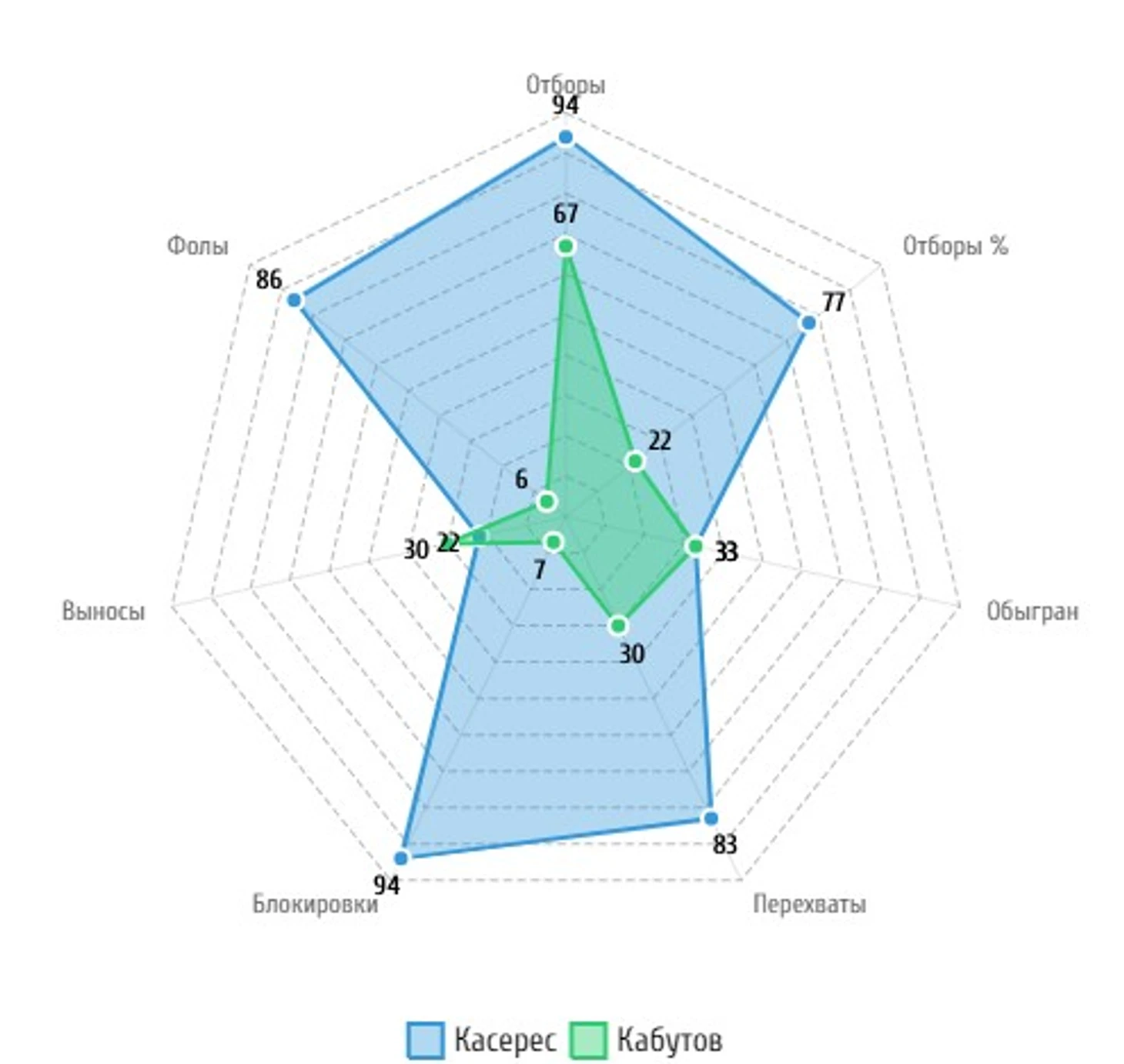Отборы 3.9 при среднем показатели среди 30 игроков на позиции крайнего защитника 2.2