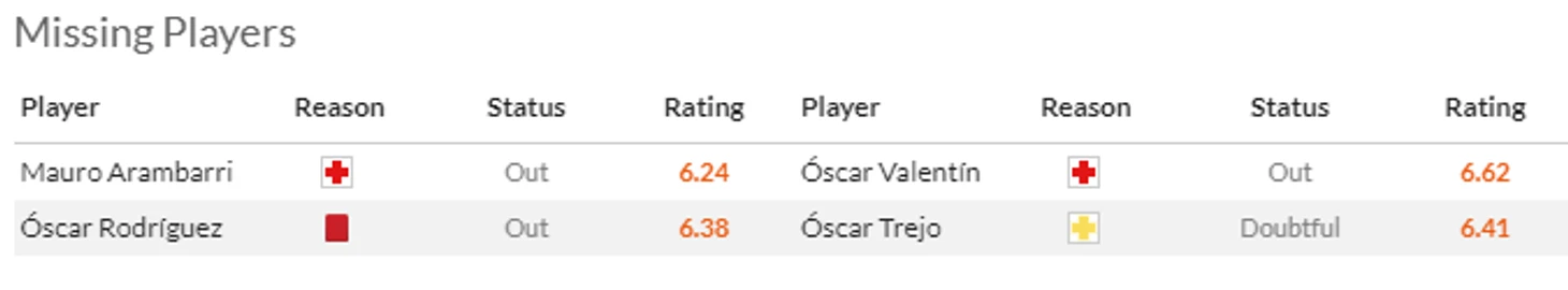 А сама Валенсия испытывает неиллюзорные проблемы в обороне в связи с дисквалификациями Коррейи(5,5) и Диакаби(5,5). Последний кстати не приходя в сознание отбудет на Кубок Африканских наций.