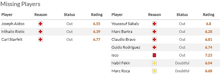 Что касается гостей, то тут тревожных алконовостей не было но и без них у Севильи под вопросом Акунья(6.5), Ламела(7,5), Нюланд(5,5), Баде(6) и Жордан(6,5).