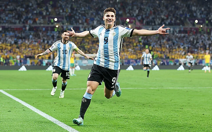 Возможно, самое яркое включение Альвареса – победный ЧМ-2022. Он начинал как сменщик, но в итоге стал главной ударной силой рядом с Лионелем Месси: четыре гола в семи матчах турнира, в том числе победный в ворота Австралии в 1/8 финала и дубль в полуфинале против Хорватии.