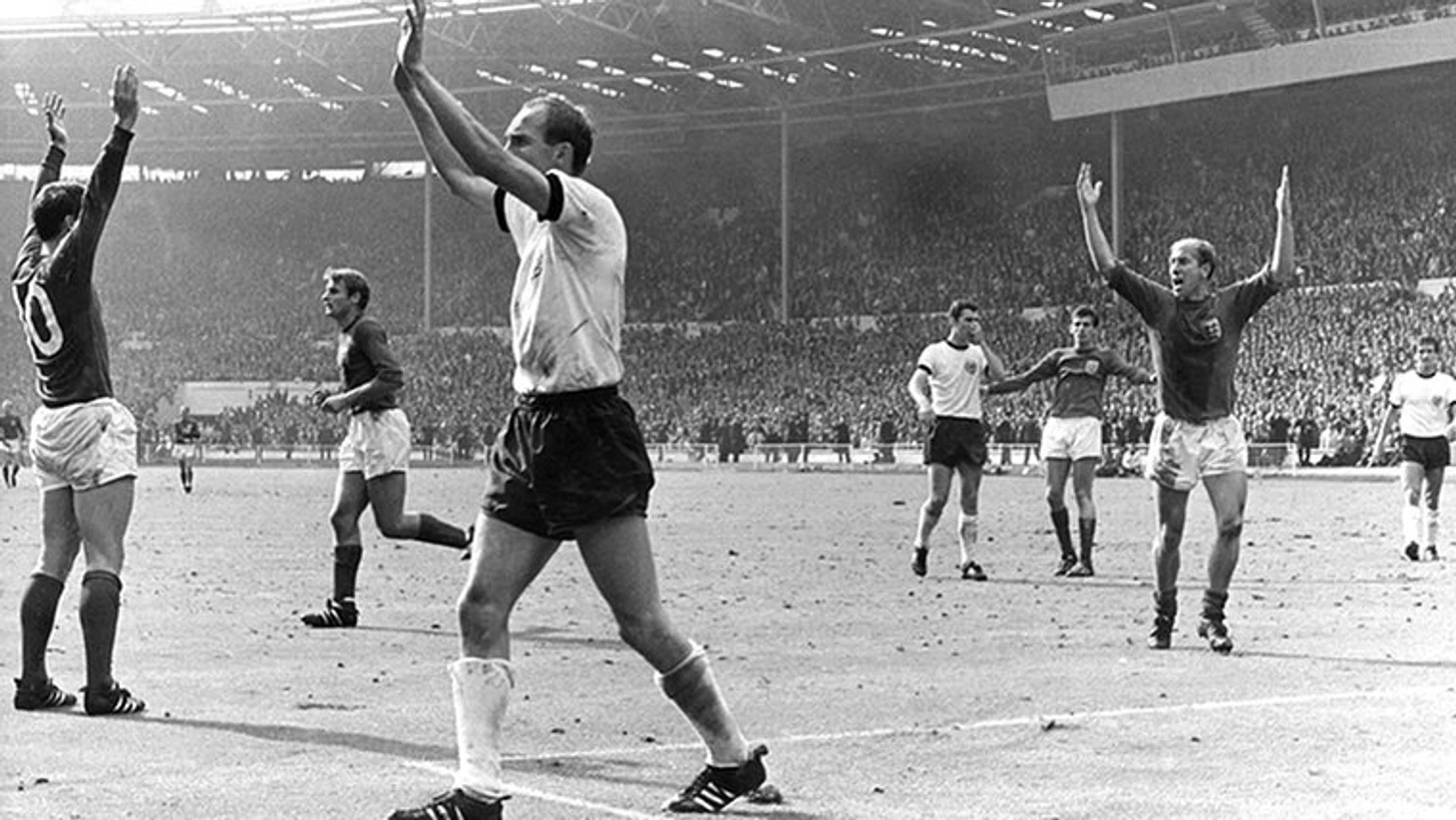 И уже там на 101-й минуте случился один из самых памятных эпизодов в истории футбола: Алан Болл выполнил подачу с правого фланга в центр штрафной, Джеффри Хёрст первым касанием подработал себе мяч настолько удачно, что качнул Шульца, а вторым касанием нанёс удар по воротам Ханса Тильковского. Мяч, ударившись о перекладину, отлетел в линию ворот и вылетел обратно в поле. Главный арбитр Готфрид Динст не видел этот эпизод полностью и обратился за советом к лайнсмену Тофику Бахрамову. Арбитр из Азербайджана хоть и не говорил со швейцарским судьей на одном языке, но жестом показал, что мяч пересёк линию ворот. Динст указал на центр поля.