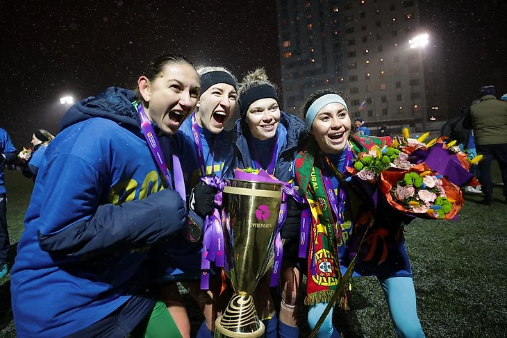 • Начнем с Франции. Здесь чемпионом традиционно стал «Лион», оторвавшийся от «ПСЖ» на 6 очков. Все «феноты» забили 69 мячей и пропустили 9, потеряв очки лишь дважды – с «Генгамом» (0:0) и с теми же парижанками (0:1) еще в 2022-ом. Плюсом был взят Кубок страны. В ЛЧ не повезло, но об этом ниже.