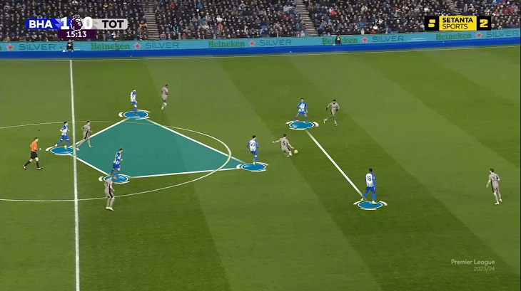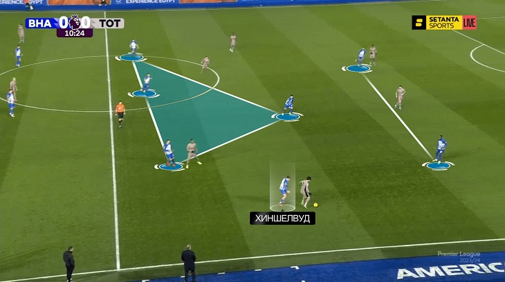 Из-за травмы Каору Митомы (выбыл на несколько недель) «Брайтон» впервые в сезоне сыграл без чистых вингеров – против «Тоттенхэма» (4:2). Выбор в пользу схемы с ромбом отлично попал под соперника: «Тоттенхэм» задействует в розыгрышах сразу двух ложных фулбэков, благодаря новой расстановке «Брайтону» было проще реагировать на их движение и играть персонально: