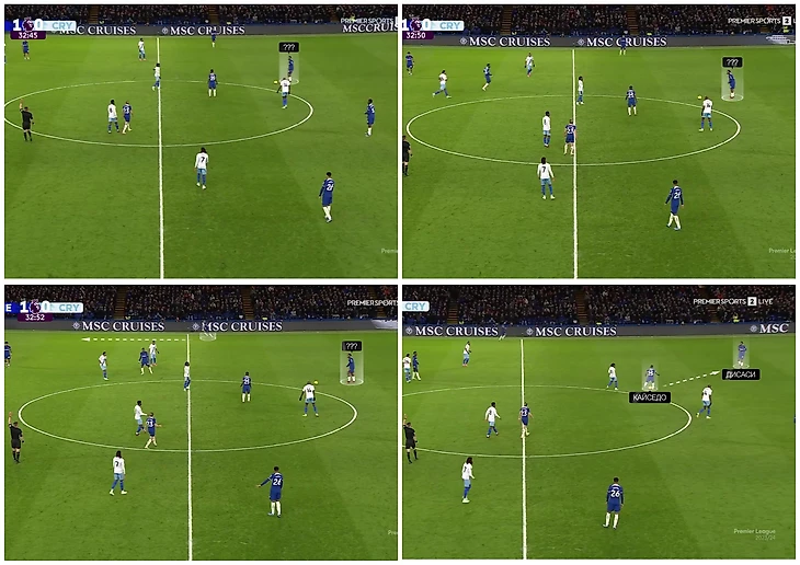 Крайне характерный момент был в первом тайме. Защитник «Челси» мог быстро разыграть штрафной пасом на свободного Мало Гюсто. Вместо этого после долгих раздумий просто уступил мяч Кайседо: