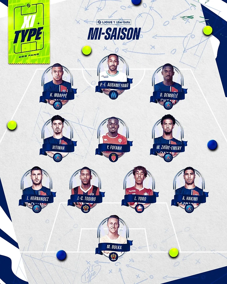 Лига 1 опубликовала результаты голосования болельщиков, которые определили символическую сборную первого круга французского первенства.