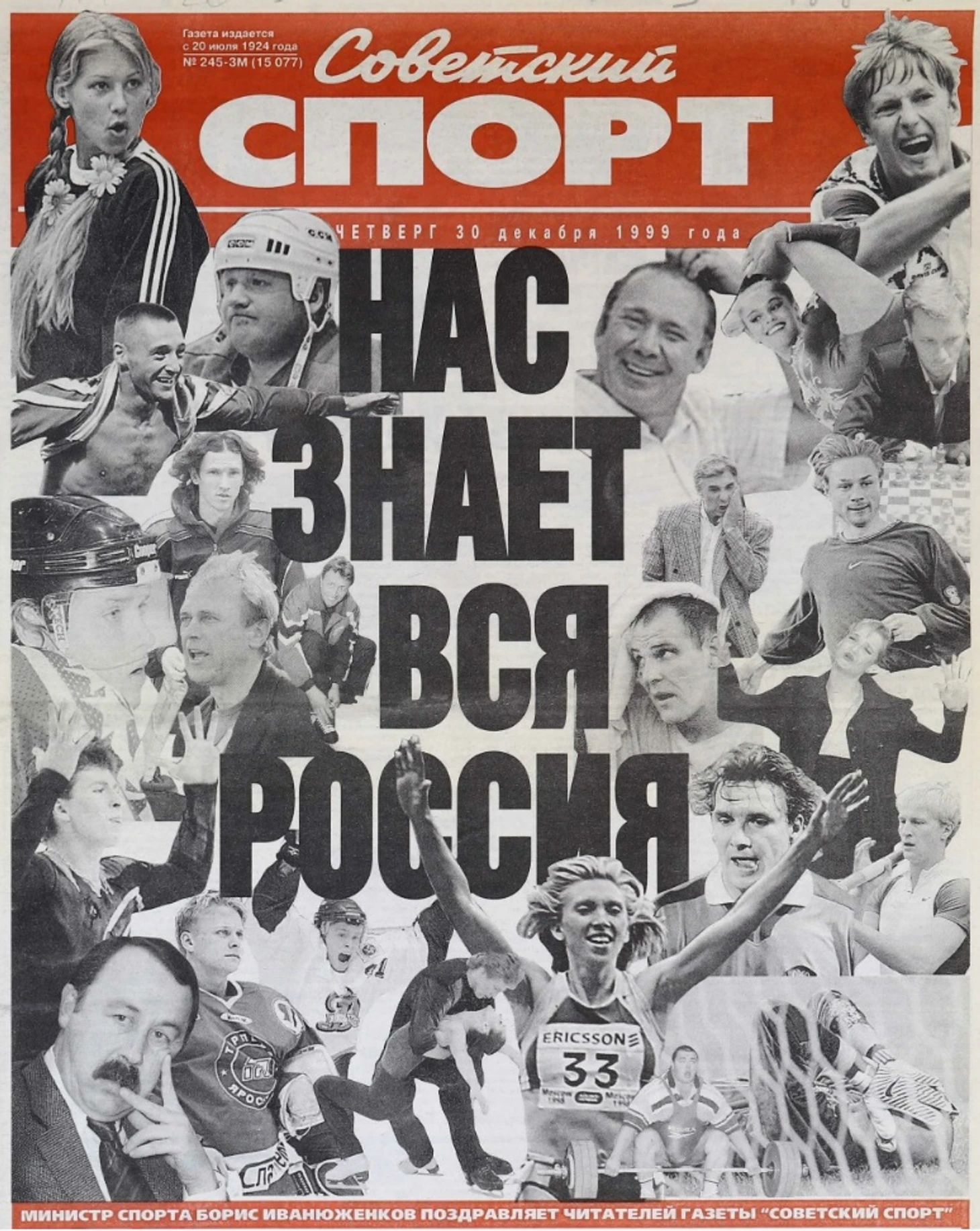 Главные спортивные лица России 1999 года. Нашлось место не только для триумфаторов, но и для неудачников: например, уволенный из «Динамо» Георгий Ярцев, вылетевший из Лиги чемпионов после 0:4 в Мольде Олег Долматов, выставленный из «Спартака» Сергей Юран и, конечно же, Александр Филимонов.