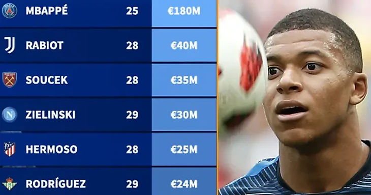 Килиан Мбаппе − 180 млн евро