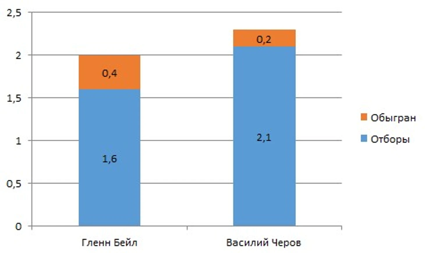 1,8 передач под удар ( выше только Дмитрий Кабутов)