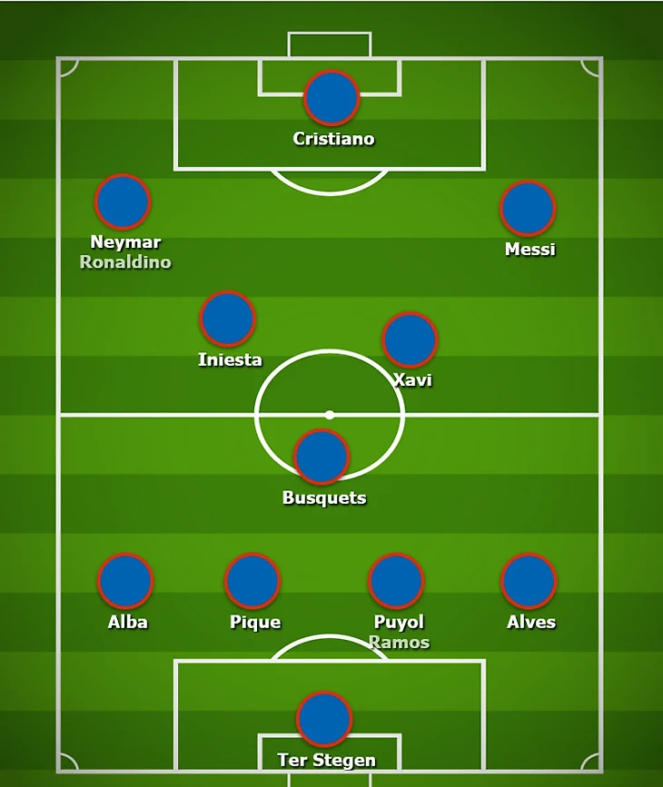 Также Лопес собрал свой идеальный состав. В команду полузащитника вошло много легенд, туда затесались даже игроки «Мадрида». А вот для себя в столь звездном составе игрок «Барсы» места не нашел. Называя имена футболистов, Педри давал небольшое пояснение к своему выбору.
