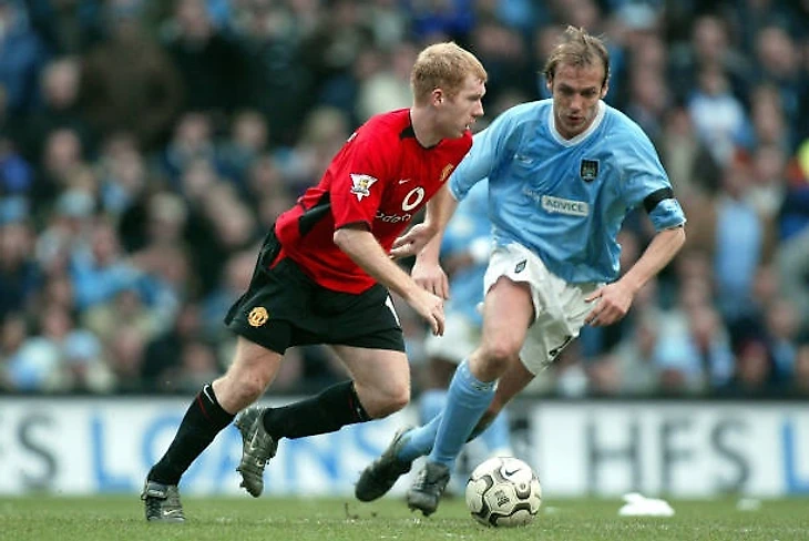 Спустя три минуты гости сократили отставание в счете: Райан Гиггз, стянув на себя несколько игроков «Сити», выложил точную передачу на набегавшего Пола Скоулза, который мощно пробил в цель. 2:1 за 10 минут до окончания первого тайма.