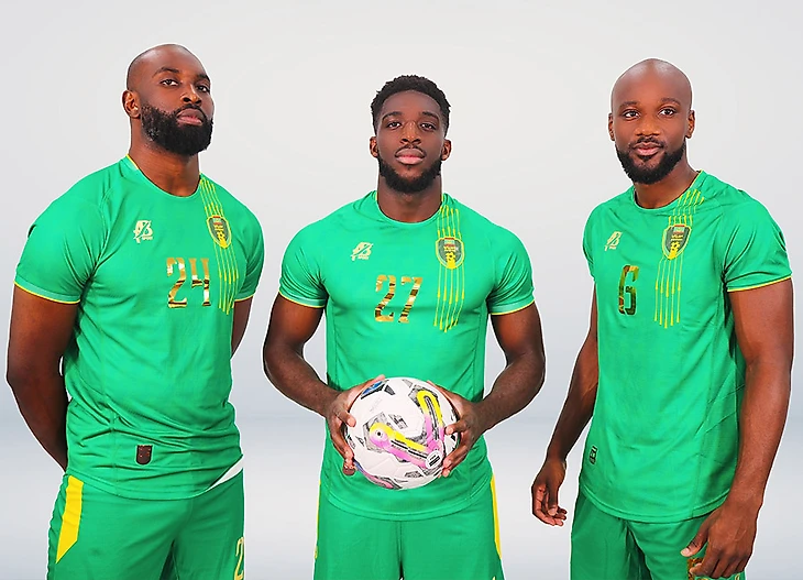 Марокканский бренд AB Sport представил форму Мавритании совсем недавно – специально к Кубку Африки. Здесь выделяются золотистые номера и желтая отделка на зеленом фоне.