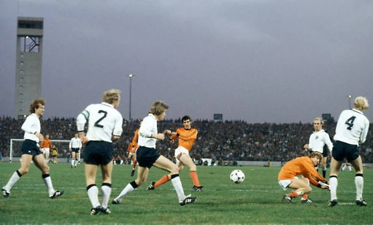 54-я минута. Вилли ван де Керкхоф у левого угла штрафной получает накоротке пас от своего брата и в сопровождении Бонхофа и Кальтца от лицевой линии делает передачу на дальнюю штангу. Ренсенбринк в падении немного не успевает замкнуть эту острую передачу.