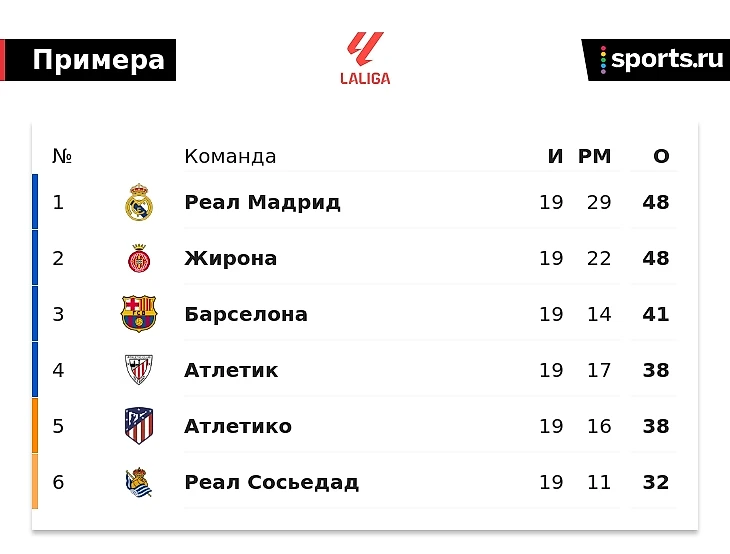 ● После первого тайма у каталонцев было 38 очков – они выпали из четверки после победы «Атлетика» над «Севильей». Но итоговая победа сохранила третье место и оставила в гонке за «Реалом» и «Жироной». До лидеров по-прежнему 7 очков.