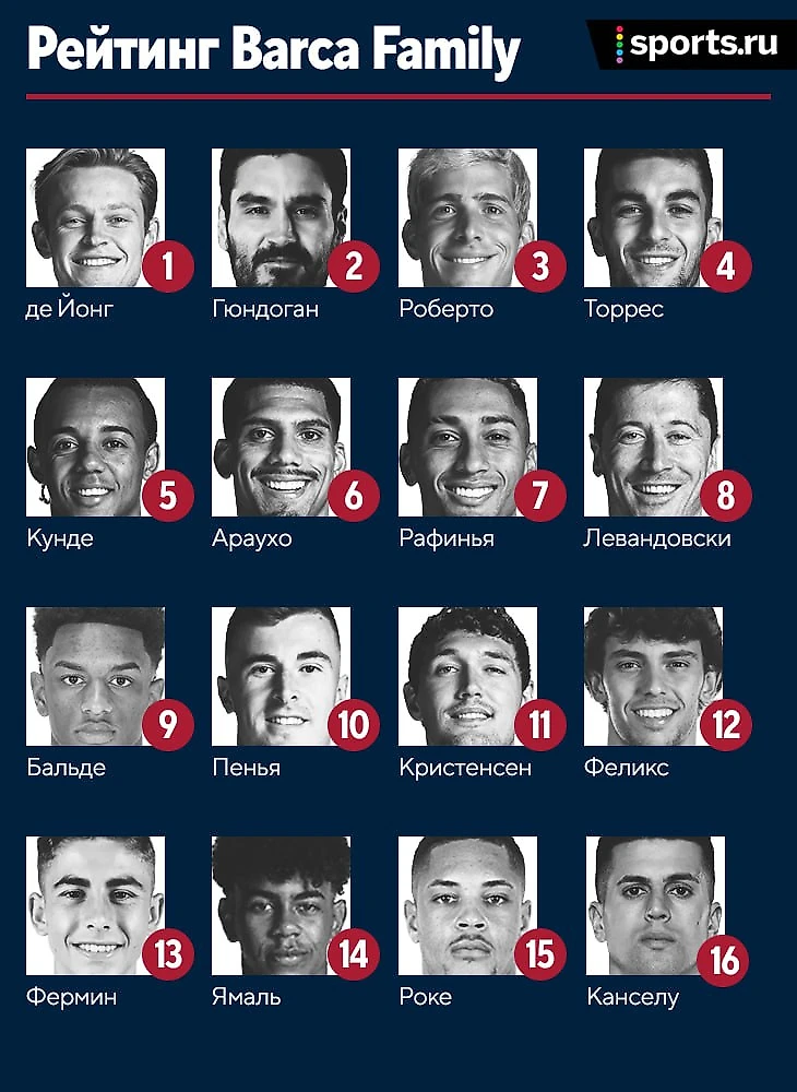16. Жоау Канселу – травма в дебюте матча помешала проявить себя. 15. Витор Роке – вышел с потрясающим настроем, но сумел упустить два очень явных момента, которые для него создали с таким трудом создали партнеры. 14. Ламин Ямаль – вдохнул активности в правый фланг и начал комбинацию, которая завершилась назначенным пенальти. 13. Фермин Лопес – создал ряд неплохих моментов, но имел слишком мало времени проявить себя. 12. Жоау Феликс – очень удачно вошел в игру, поучаствовал во всех эпизодах в концовке матча и был близок к забитому голу.