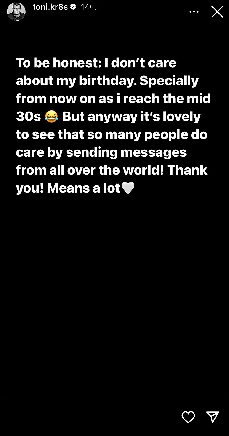 Со скромностью у Тони точно нет проблем. Под конец дня немец сделал публикацию в своем фирменном стиле: