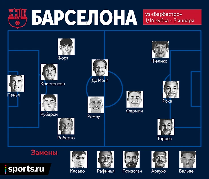 Выпускайте Роке! Стартовый состав «Барселоны» на кубковый матч против «Барбастро»