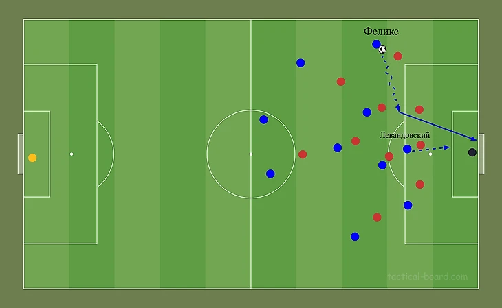 Ушел на дальнюю штангу туда и Феликс сделал нацеленную подачу.