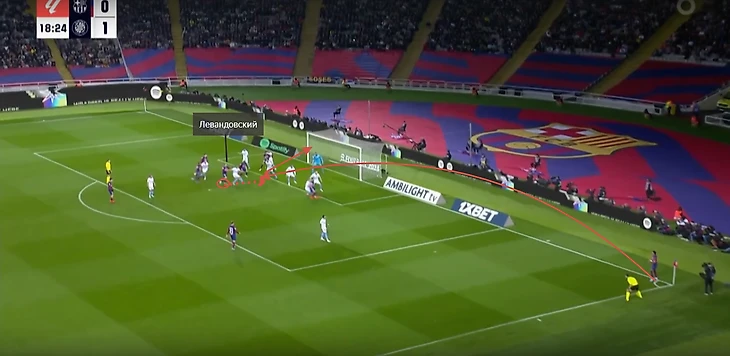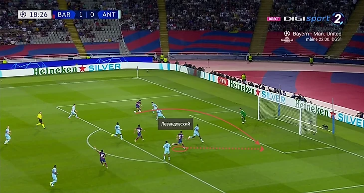 Игра «Барселоны» в завершающей стадии. Атаки каталонцев проходят через фланги. Жоау Феликс и Рафинья часто смещаются в центр перед штрафной площадью и наносят удары с дальних позиций.