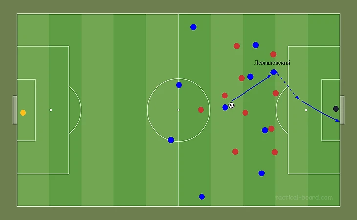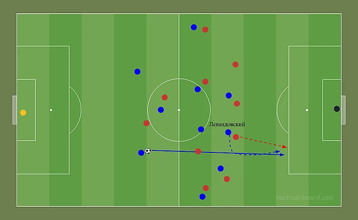 У Левандовского не такая хорошая скорость. Если он будет использовать забегания за спину с центра поля, то его догонят защитники.