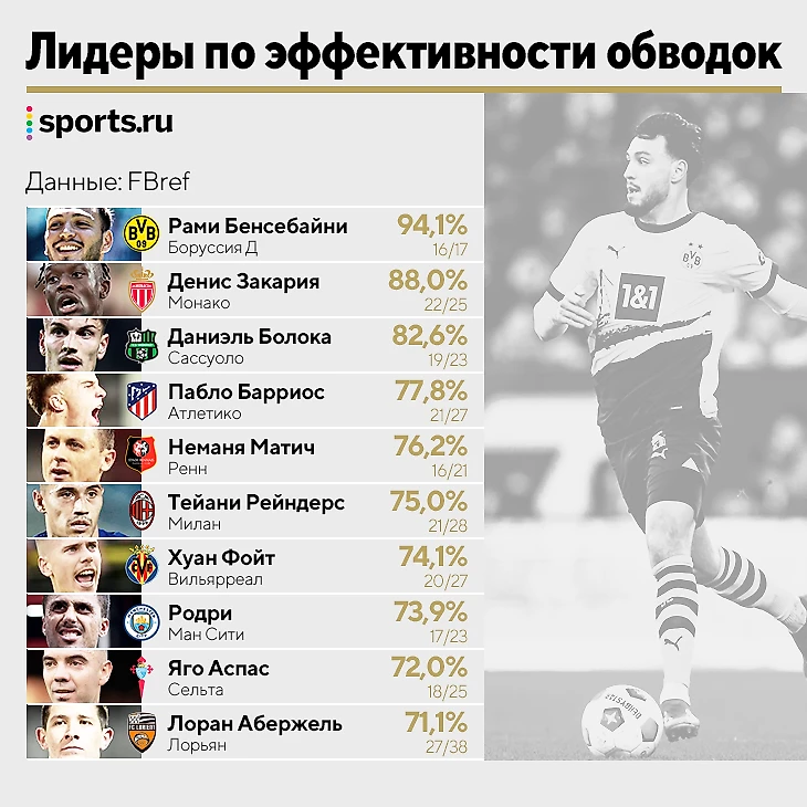 Сразу поясним: мы отбирали игроков с не менее чем 15 успешными обводками для более объективного отражения реальности.