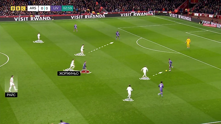 Это особенно впечатляет на фоне недавних проблем – после встречи с «Фулхэмом» мы делали акцент именно на дыре в прессинге «Арсенала». Артета решил эту проблему. В центре поля вышла пара Жоржиньо-Райс, а за старт давления отвечали Хавертц и Эдегор.