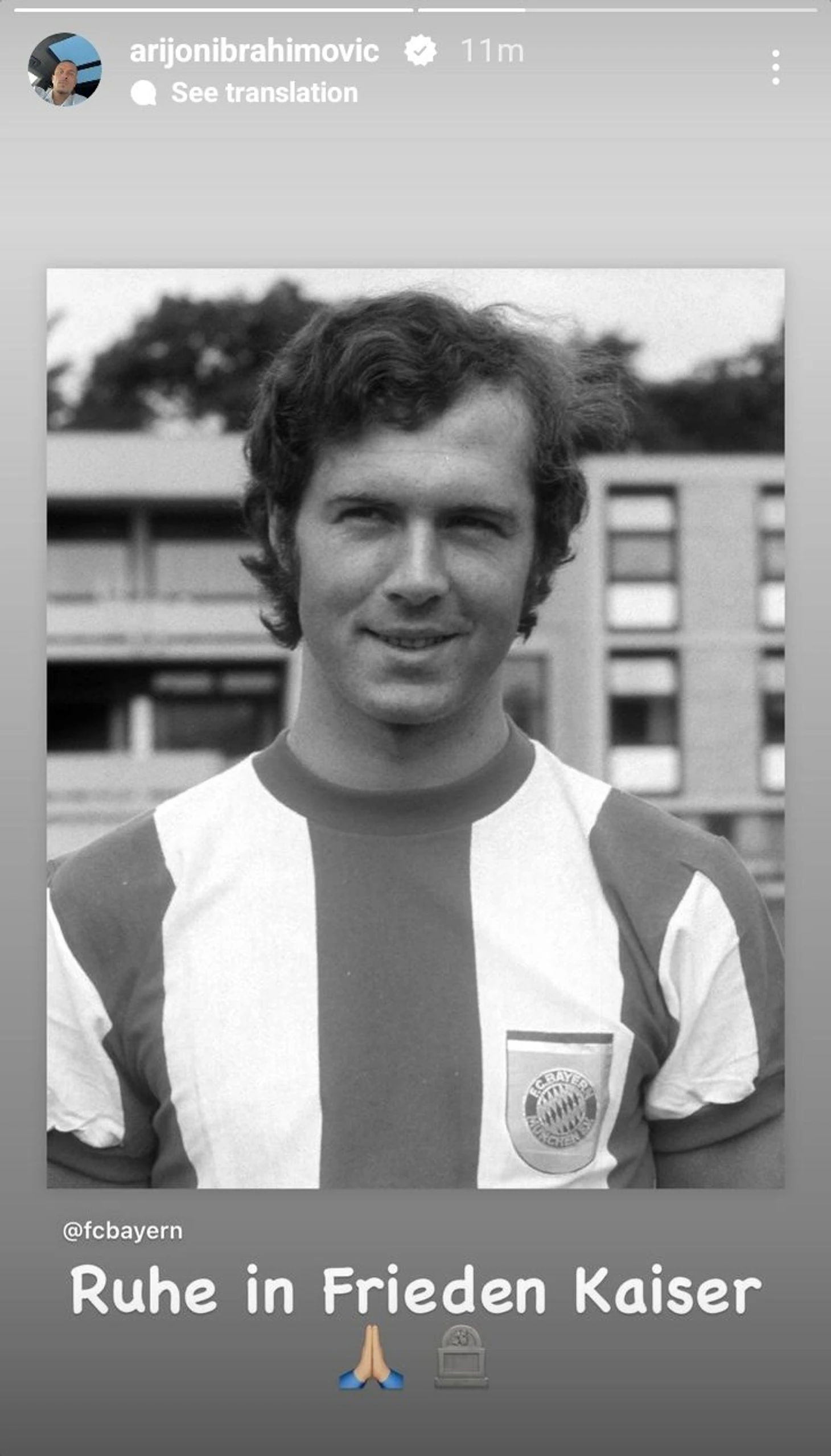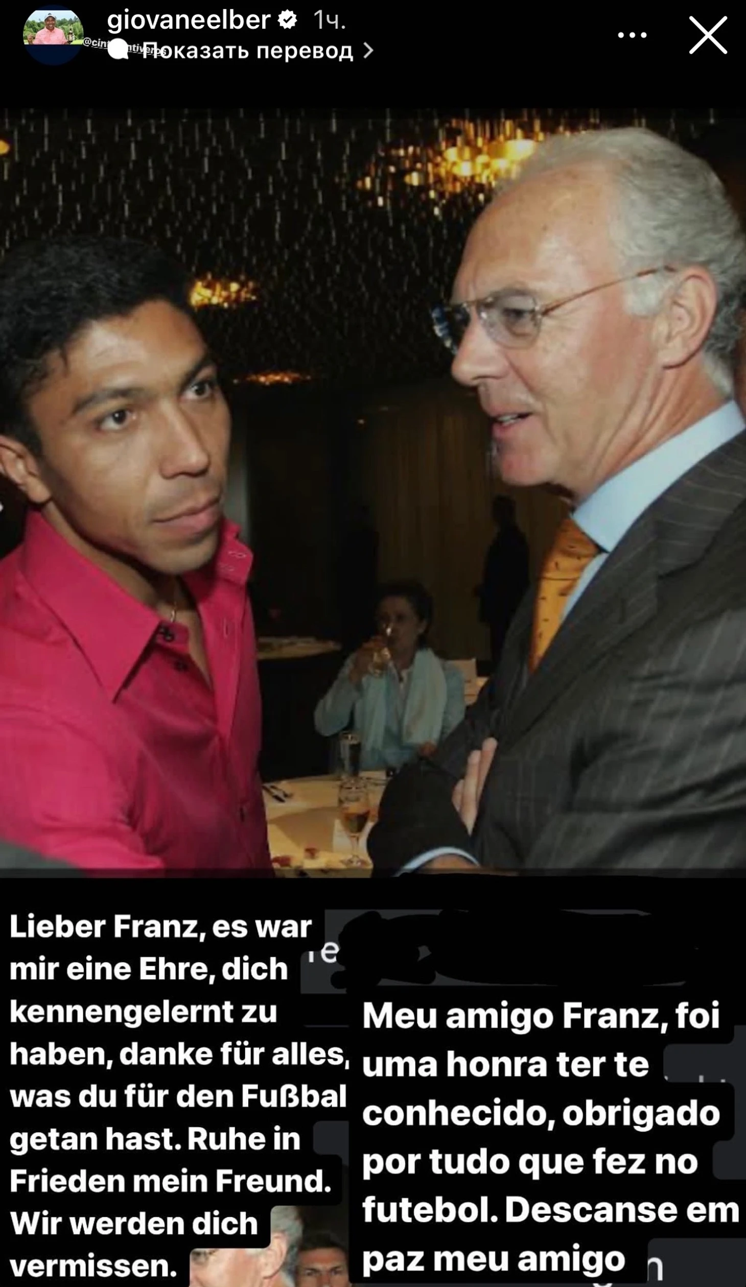 Джоване Элбер: «Дорогой Франц, для меня было честью познакомиться с тобой. Спасибо за все, что ты сделал для футбола. Покойся с миром, мой друг. Мы будем скучать по тебе».