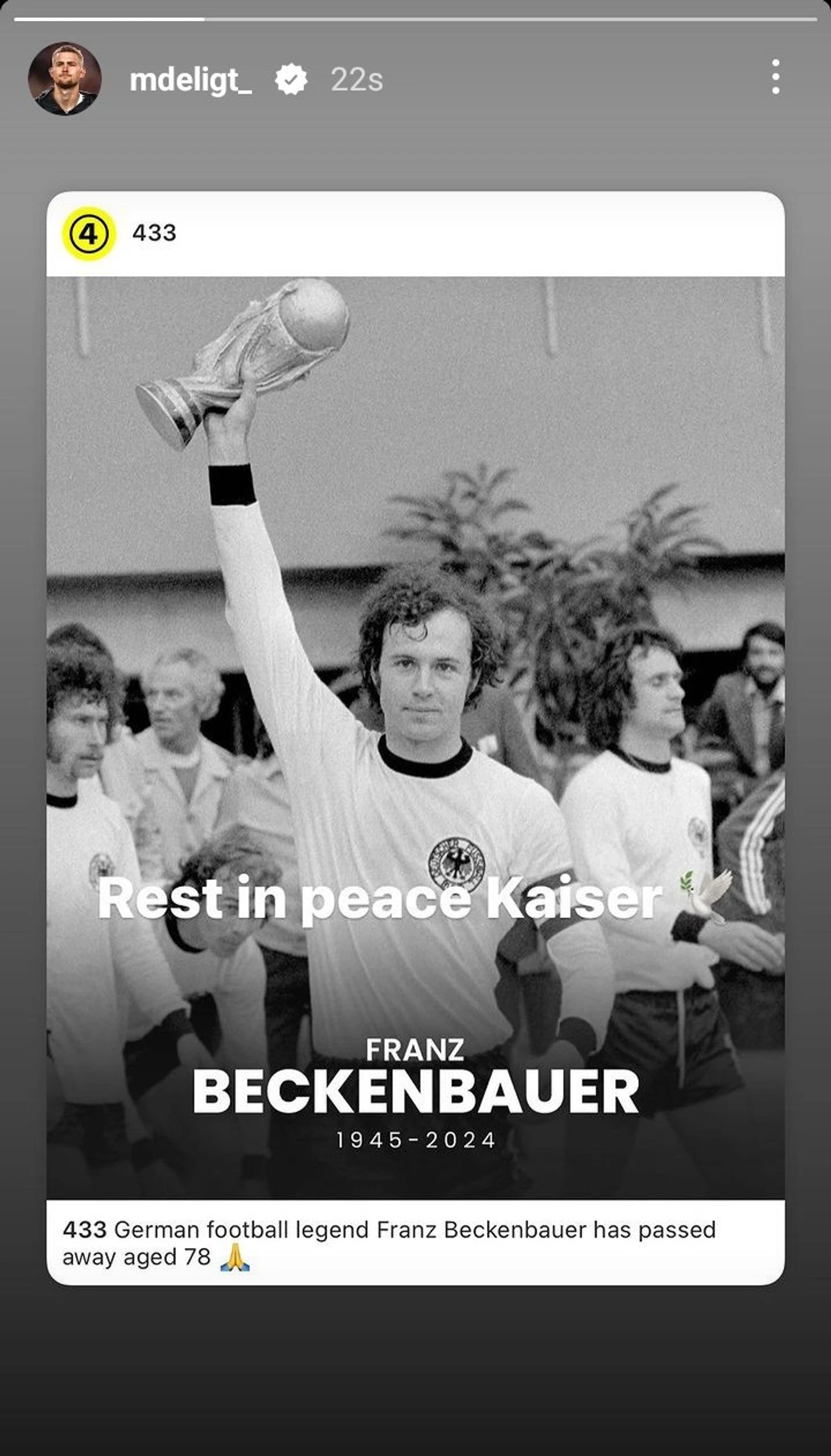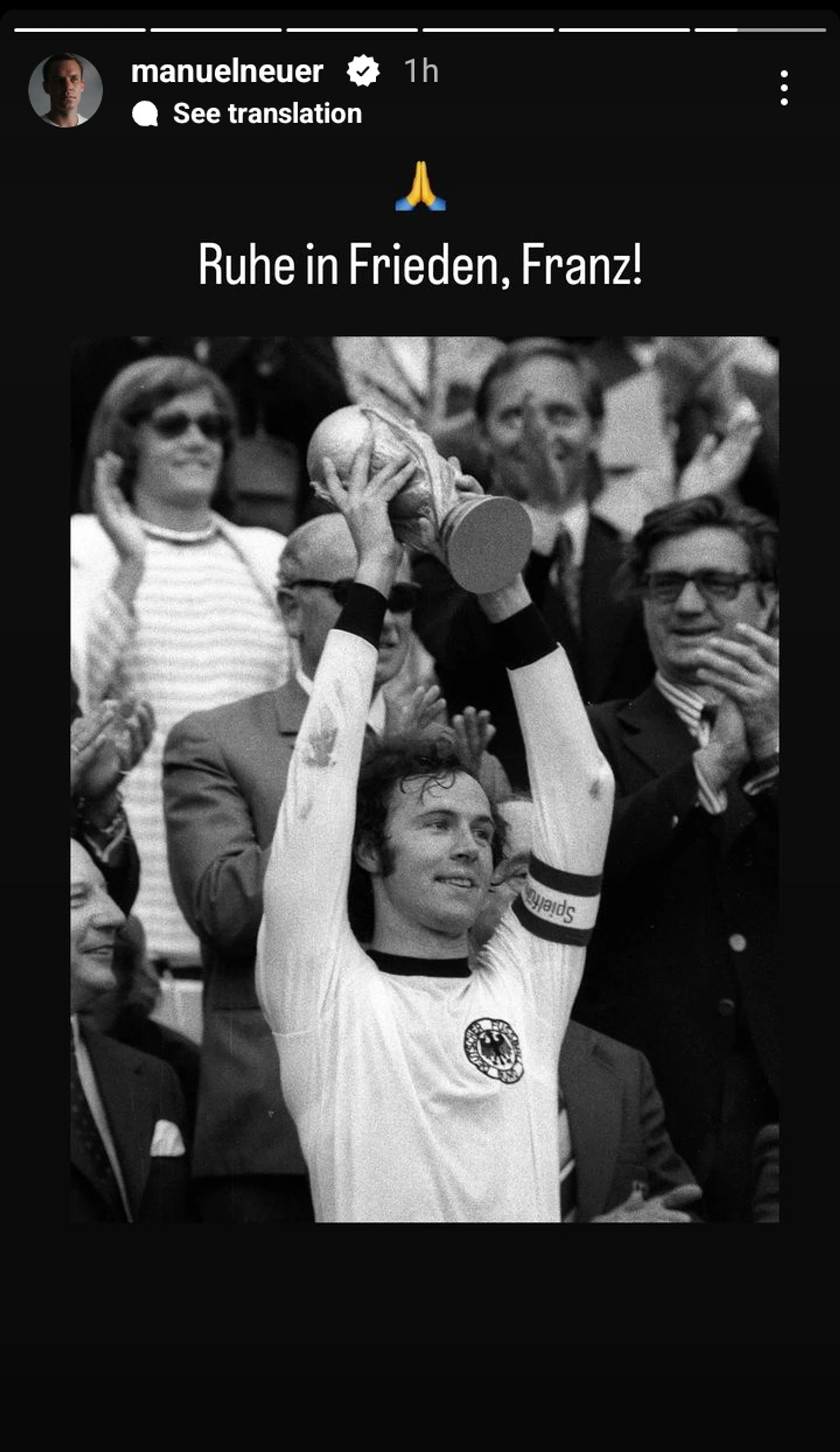 «Внезапно наш мир изменился – он стал темнее, тише, хуже. Рекордмайстер оплакивает потерю Франца Беккенбауэра, несравненного Кайзера, без которого «Бавария» никогда бы не стала тем клубом, которым является сегодня. Покойся с миром, Кайзер», – так «Бавария» сообщила болельщикам о смерти легенды клуба.