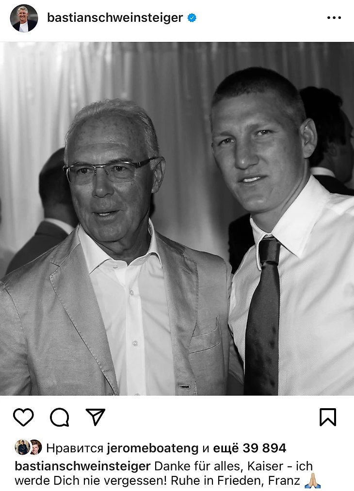 Бастиан Швайнштайгер: «Спасибо тебе за все, Кайзер – я никогда тебя не забуду! Покойся с миром, Франц».