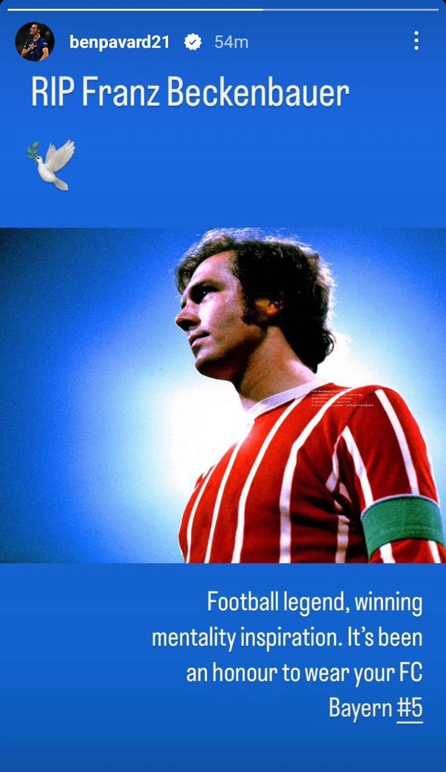 Бенжамен Павар: «Покойся с миром, Франц Беккенбауэр. Легенда футбола, вдохновитель победного менталитета. Для меня было честью носить твой номер в «Баварии».