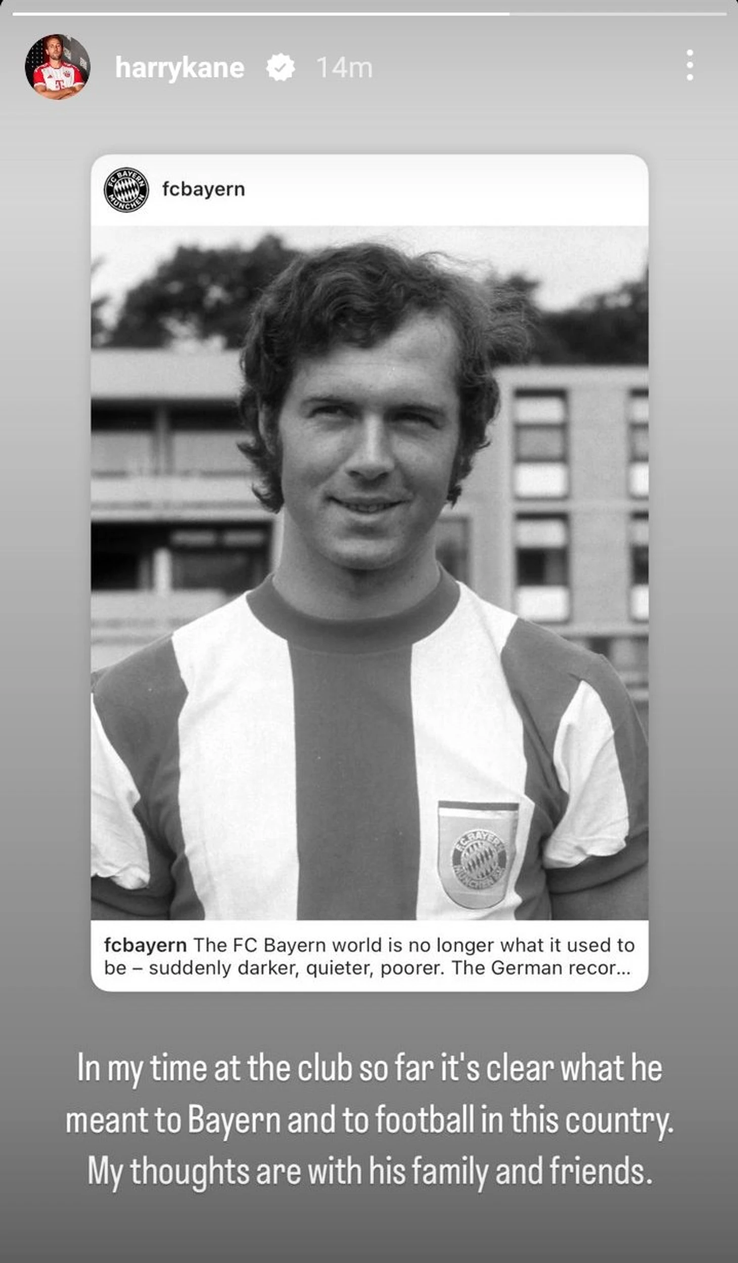 Харри Кейн: «За то время, что я провел в клубе, стало очевидно, что он [Беккенбауэр] значит для «Баварии» и для футбола в своей стране. Мои мысли с его родными и друзьями».
