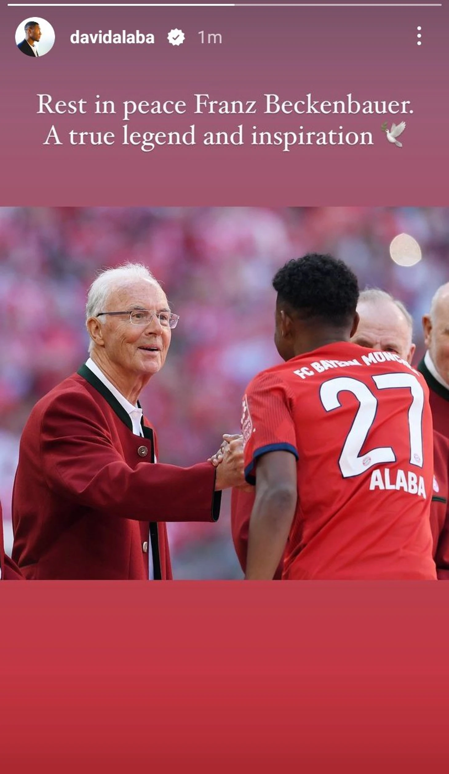 Давид Алаба: «Покойся с миром, Франц Беккенбауэр. Настоящая легенда и вдохновитель».