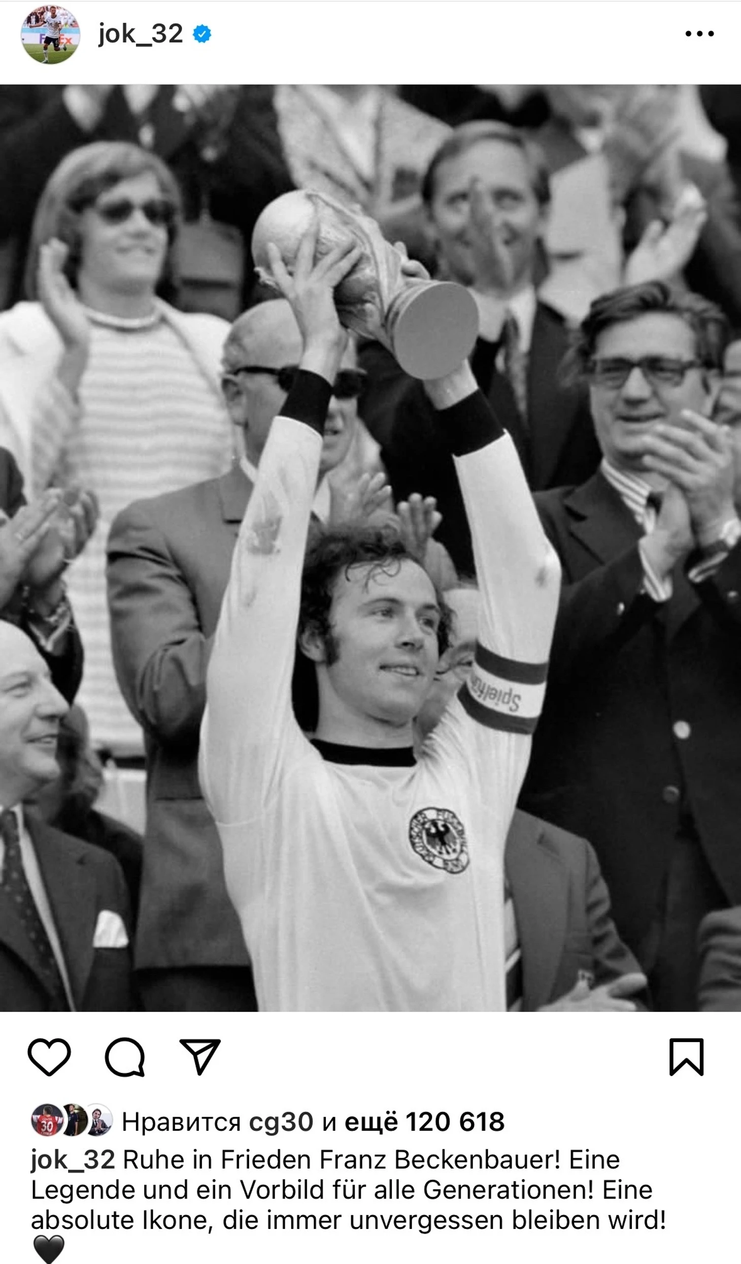 Йозуа Киммих: «Покойся с миром, Франц Беккенбауэр! Легенда и пример для всех поколений! Абсолютный идол, о котором всегда будут помнить!»