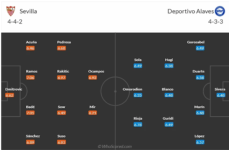 Кого брать: Хозяев. Севилье отчаянно нужны очки и если их не набирать дома со скромным Алавесом, то можно смело готовиться к Сегунде. Пользу тут могут принести Рамос(6,5) с Педросой(5,5) или Окампос(8) с Ракитичем(7).