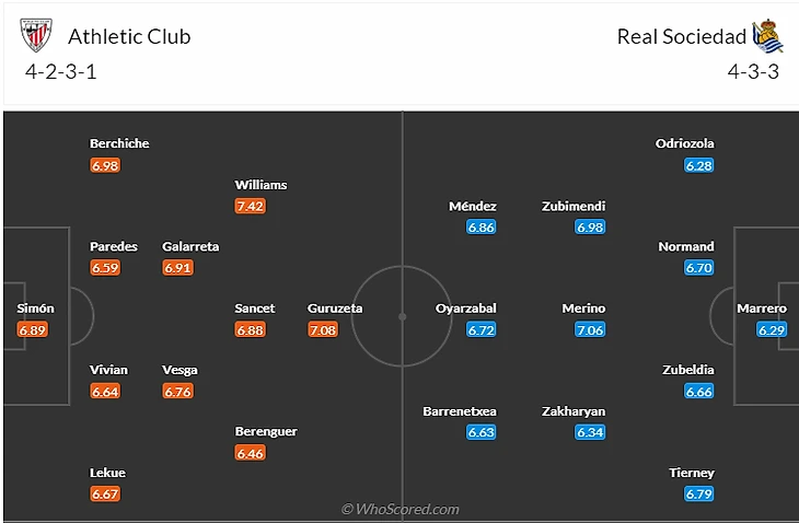 Кого брать: СТрелков. Что за дерби без голов.. как это это не по-баскски. Потратьтесь на Сансета(7,5) с Нико Уильямсом(7,5) или Ойарсабаля(8) с Браисом Мендесом(8).